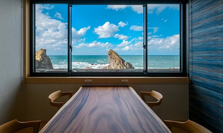 越前町の海沿いにある料理旅館。北陸随一の仕入れ量を誇る越前がにを使ったコース料理は、ボリューム満点で大満足。また、日本海の絶景を眺めながら入れる温泉も人気です。事前に予約すれば、4名以上(平日は2名以上)で日帰り昼食も利用できます。