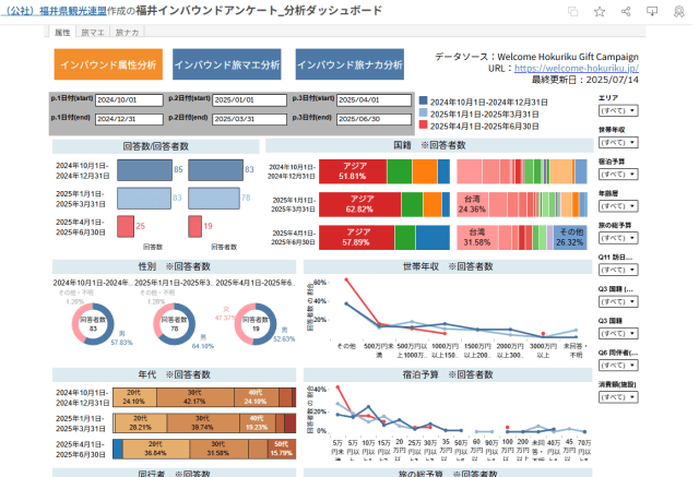 富山、石川、福井に来訪したインバウンド観光客のアンケート回答データを分析できるツールです。