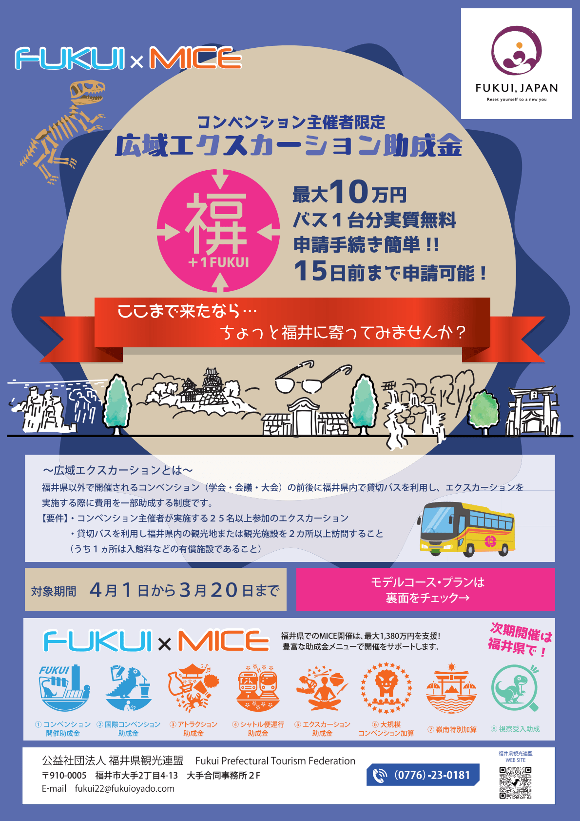 ・貸切バスを利用し福井県内の観光地または観光施設を2カ所以上訪問すること(うち1カ所は入館料等の有償施設であること)