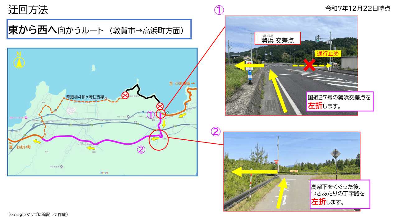 ※迂回路を含む小浜市街~おおい町うみんぴあエリアまでの約15kmの区間は補給箇所がありませんのでご注意ください。