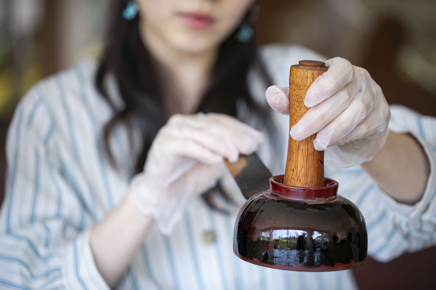 伝統の「うるし塗り」を守りつつ、2019年からはショップ併設工房で誰でも塗りの工程を間近で見学・体験できるようになりました。