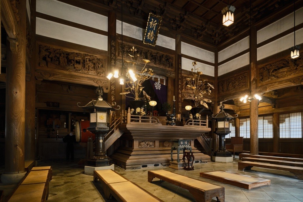 The Hatto, or "Dharma Hall," is used for sermons and large assemblies. Enshrined at the center of the main altar is Kanzeon Bosatsu (the Bodhisattva of Compassion, one of the most widely revered figures in Japanese Buddhism). With a floor area of 420 tatami mats, it is used for the early morning services when all unsui gather together, as well as for various Buddhist ceremonies. Located at the highest point within the temple grounds, the Hatto offers a commanding view of the entire complex — savor the solemn atmosphere alongside the beautiful scenery with a quietly settled heart.