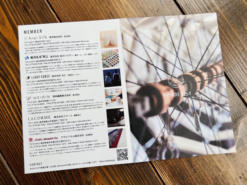 Lacorme is a member of "MADE BY," a network of textile-related companies in Fukui. To ensure the textile industry remains sustainable and is passed down to the next generation, "MADE BY" organizes factory tourism, regional tours, and various events that provide opportunities for learning and information sharing. Many of the member companies welcome factory tours. (Please contact each individual company for inquiries regarding factory visits.)
