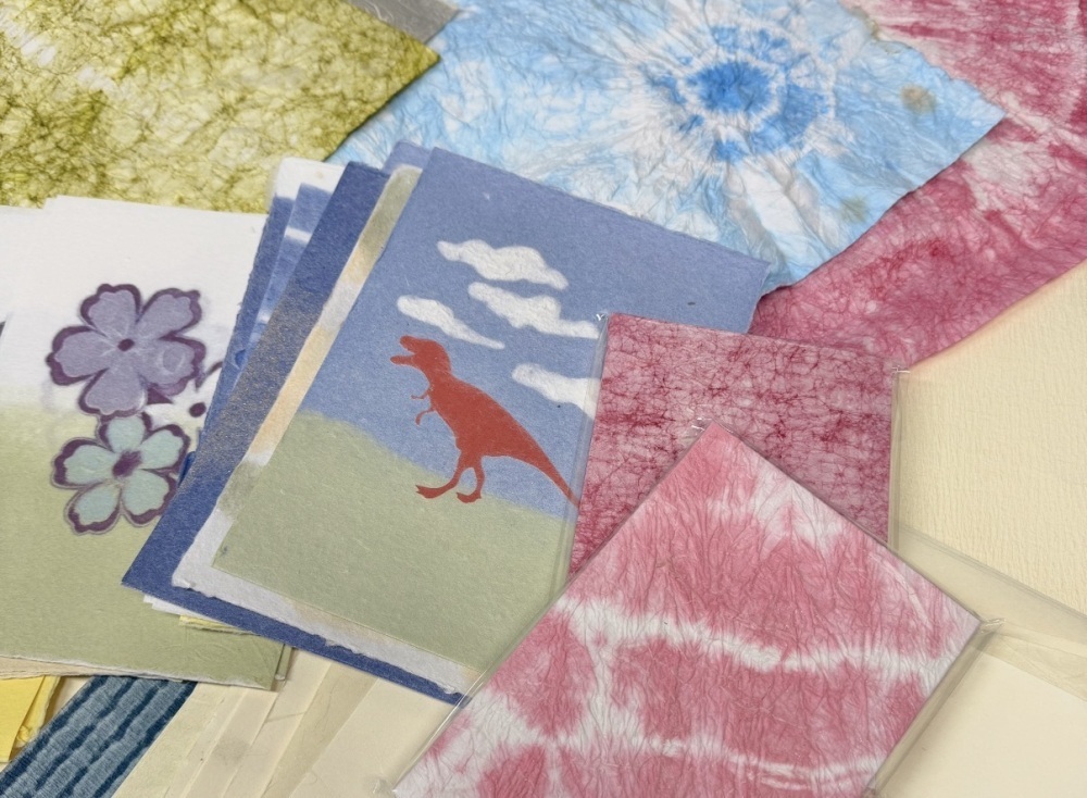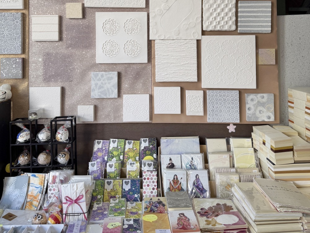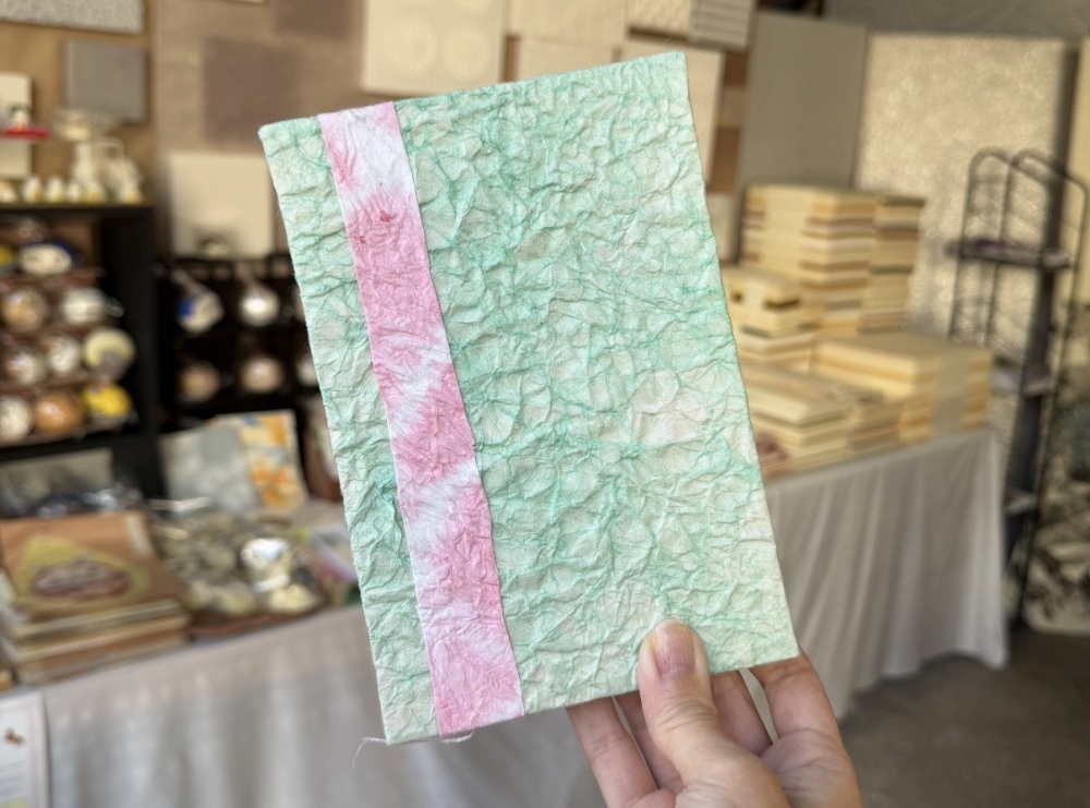 While paper-making experiences are available here, this time we will introduce the popular 'Goshuin-cho (A stamp book for seals from shrines and temples) making (Large size: 1,000 yen).' First, select your favorite from the colorful array of Washi papers lined up. You will likely lose track of time, drawn in by the unique textures and beautiful patterns. As you layer the selected Washi and prepare the cover—carefully guided by artisans who teach you everything from cutting and pasting to professional tips—the book gradually takes shape.
