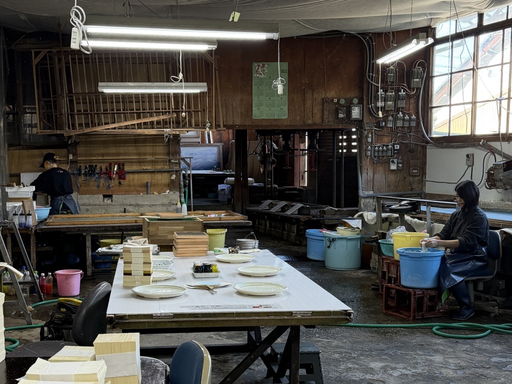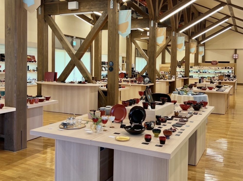 At "Urushi no Sato Kaikan" (Lacquerware Village Museum) in the Kawada area of Sabae City, visitors can learn about the history and background of Echizen Shikki, as well as view exhibits and observe the production process. The facility features a diverse range of lacquerware crafted by local workshops, and the shop space is well-stocked for purchasing.