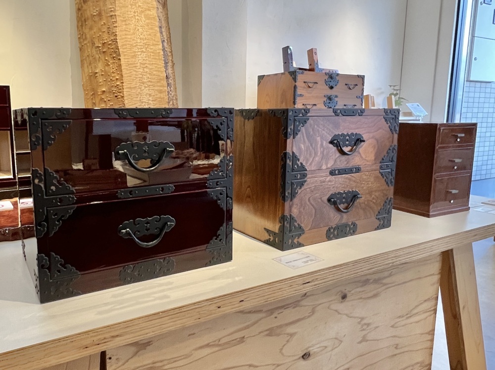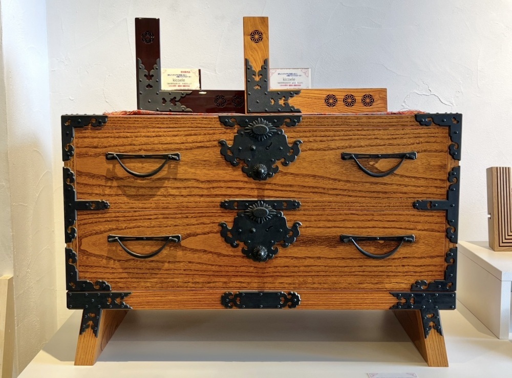 Echizen Tansu (Traditional chests) are crafted using Sashimono (A technique of assembling wooden boards with interlocking joints without nails). They incorporate Echizen Shikki (Lacquerware) techniques for the lacquer finish and Echizen Uchihamono (Hand-forged cutlery) techniques for the decorative iron hardware. Cherished since the Edo period (1603-1867) as wedding dowries and family heirlooms, they are now widely appreciated as ""highly artistic furniture"" that harmoniously blends retro and modern styles.