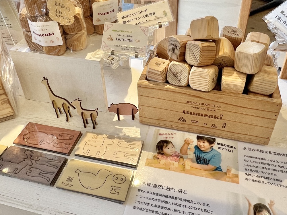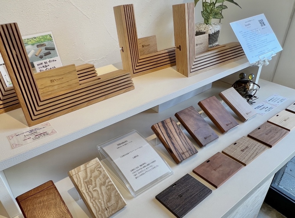 "Oyanagi Tansu-ten" in Echizen City is a Shinise (A long-established shop with a history and tradition) with over 100 years of history. Its atelier, opened in 2014, showcases the brand "kicoru," born from a deep dedication to wood. The shop features various items such as business card cases, wooden speakers, and Moku-iku (Wood education - items designed to foster familiarity with wood) products. These products utilize traditional Echizen Tansu (Traditional wood-jointed chests) techniques while providing innovative ideas for modern daily life. Knowing the artisan's passion behind each piece makes them even more special. Consultations for custom-made furniture are also available.