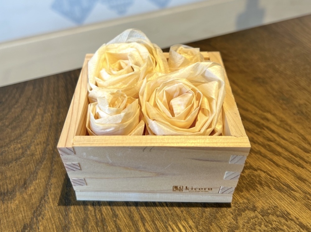 By rolling up the Kezuribana (Thin wood shavings produced during planing), they transform into small floral objects. A pleasant aroma of Hinoki (Japanese cypress) spreads from the finished Masu (Traditional square wooden box), serving as a gentle accent for your room. This experience is filled with the warmth of wood, fostering a special attachment since you make it yourself. Various other workshops, such as making earrings that showcase the natural wood grain, are also available.