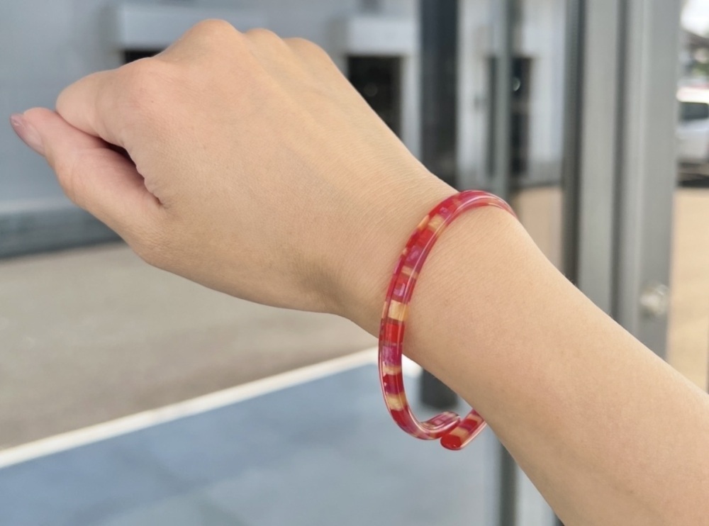 Sabae City is a major production center boasting the top national market share for eyeglass frames. At "KISSO LAND," managed by Kisso Co., Ltd. (A materials trading company specializing in eyewear), visitors can enjoy a hands-on Monozukuri (The Japanese spirit and technique of craftsmanship) experience using Cellulose Acetate (A plant-based resin used for high-quality eyeglass frames). In the popular "Bracelet-making (2,970 yen)" workshop, you select your favorite pattern from a colorful array of Acetate materials. The chosen parts are heated to soften them, then bent and shaped using special molds. Finally, after a polishing process to bring out a beautiful luster... your original bracelet is complete! Because it is handmade, the joy of wearing it is truly special.