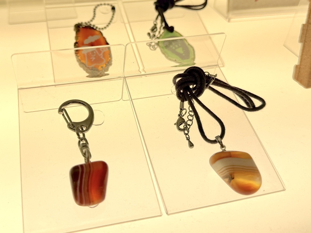 For the finishing touch, an artisan will turn your stone into a pendant or a keychain. I had mine made into a pendant. The natural stone's gradation is beautiful, and it has a strong presence as a piece of jewelry!
