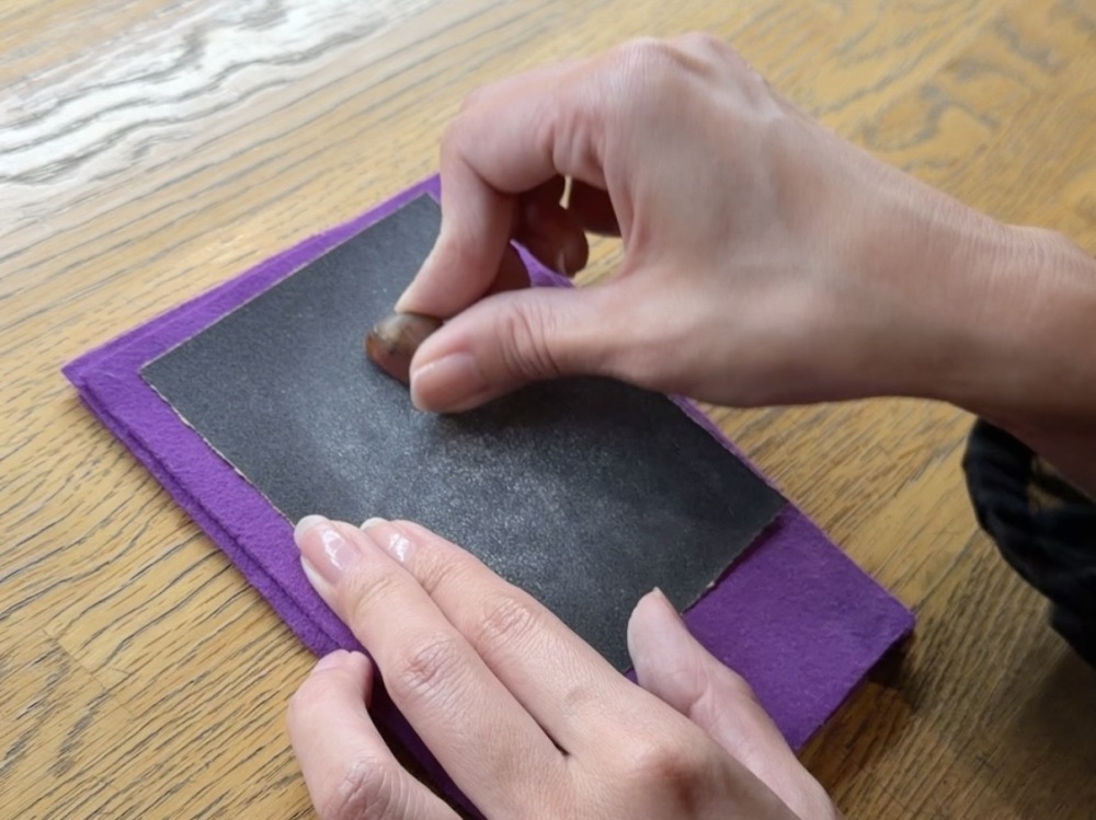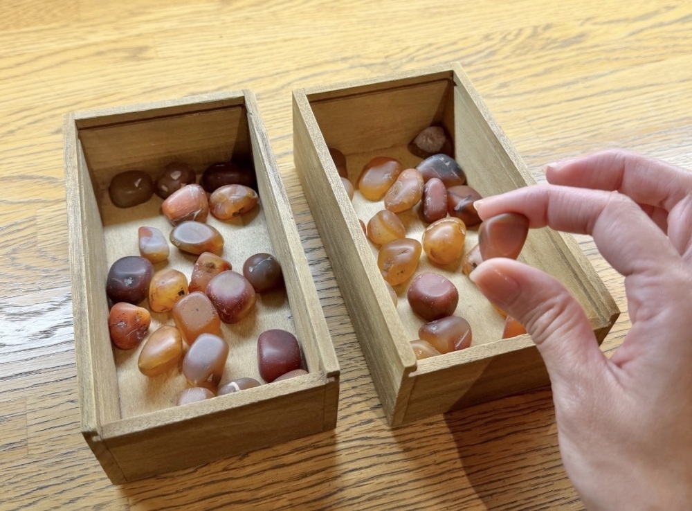 At "Wakasa Kobo," you can experience "Menou-migaki" (Agate polishing, 1,100 yen). First, you choose your favorite stone and diligently polish it for about 40 minutes using two types of sandpaper, which gradually brings out the stone's transparency.