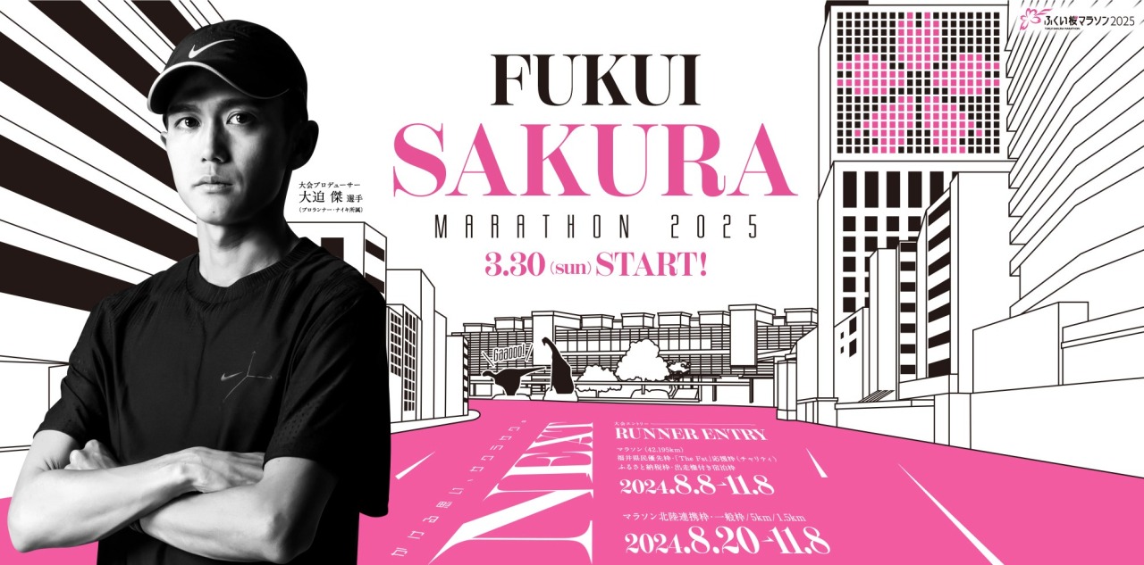 The Fukui Sakura Marathon is a 42.195-km marathon held under the concept of "a pointy full marathon that Fukui can be proud of," "the last but newest full marathon in all prefectures," and "a full marathon to run, see, support, and connect.