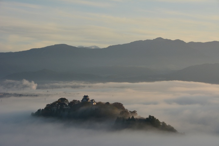 Head east from Fukui City to Ono to see Echizen Ono Castle, which is built on a small mountain. Clouds occasionally wreathe the mountain early in the morning between October and April, making the castle appear to float above the town and earning it the nickname “castle in the sky.” The best way to view this phenomenon is by hiking about 20 minutes to an observation point on Mt. Inuyama, about a kilometer to the west.