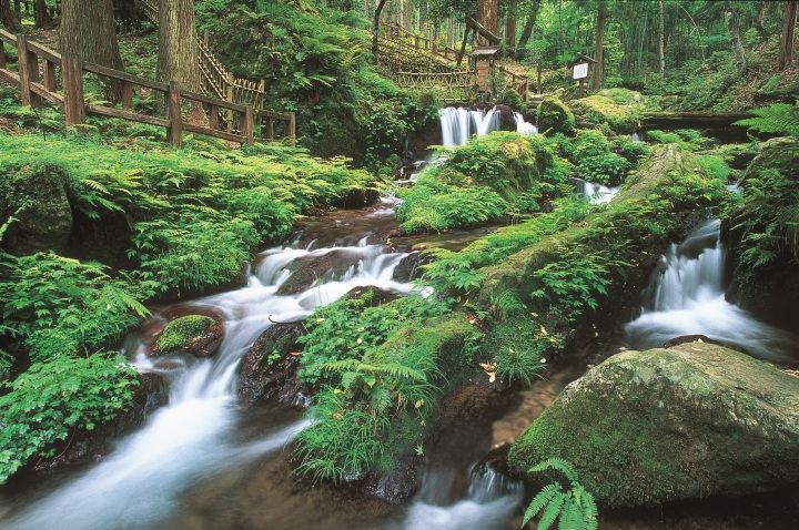 Take a 10-minute drive west from Kumagawa-juku to visit the moss-covered grounds of Tentokuji Temple, then walk to Uriwari no Taki Falls. These low falls are fed by a spring and resemble a series of small rivers. There are faucets around the parking area where you can bottle the delicious spring water for a small fee.