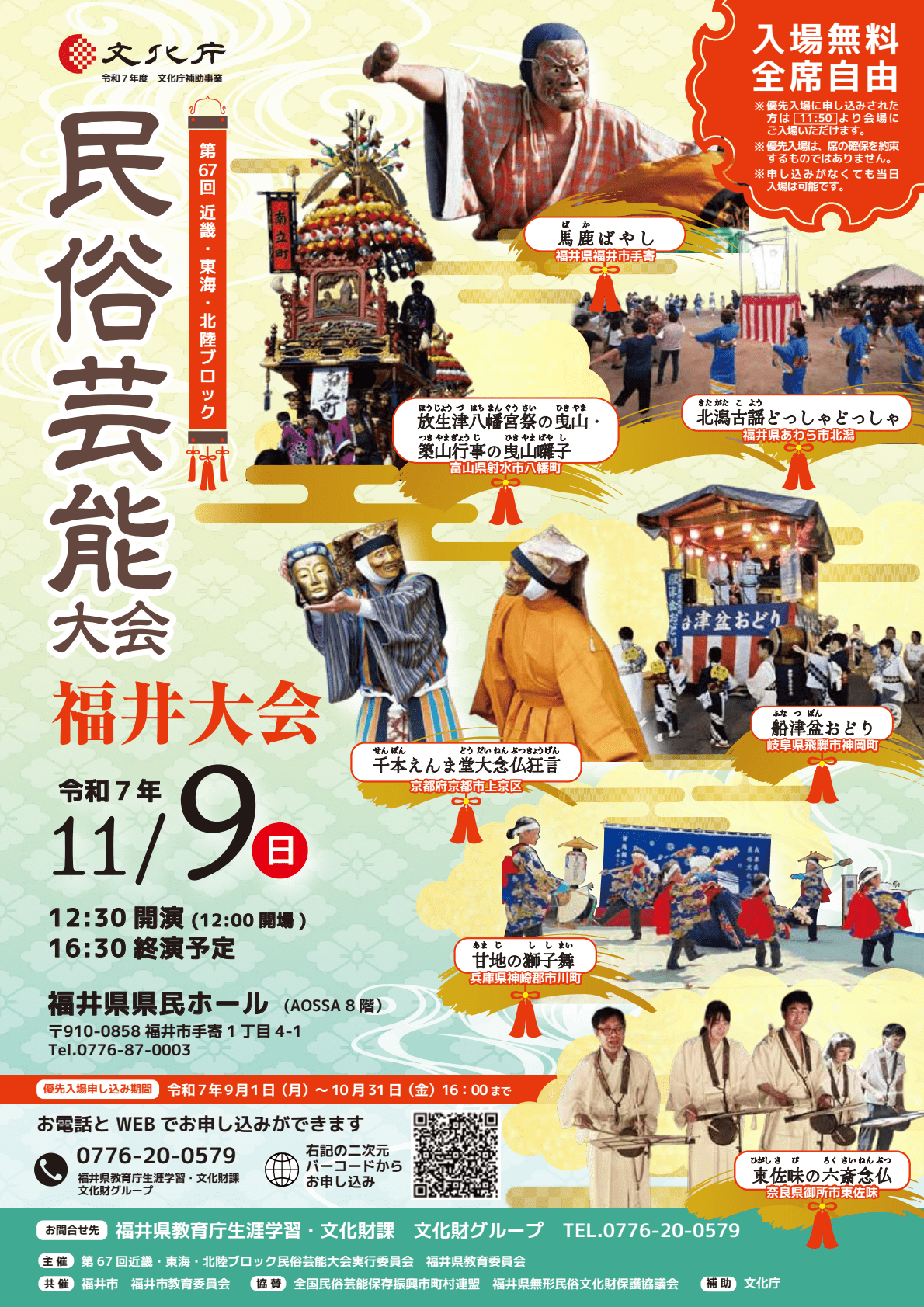このたび、福井県では平成25年以来の大会となる「第67回近畿・東海・北陸ブロック民俗芸能大会」を下記の通り開催します。