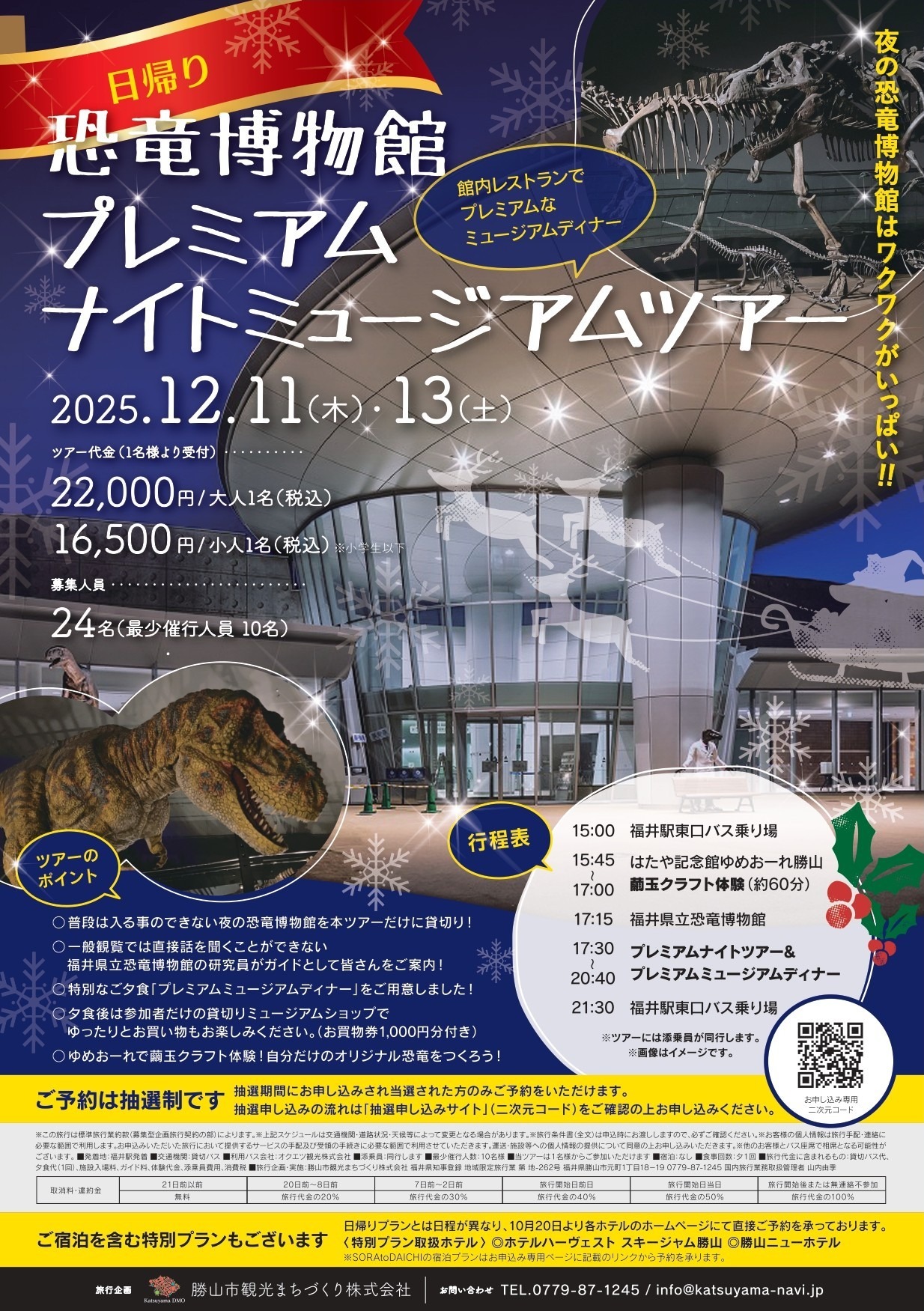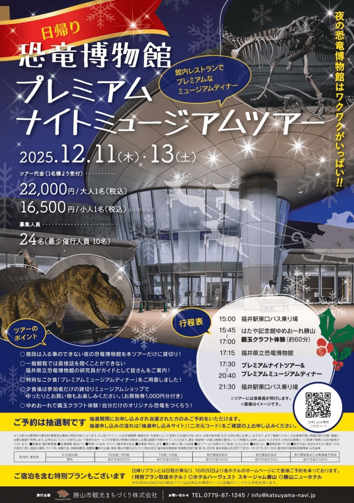 2025年12月11日(木)~14日(日)の4日間、夜の恐竜博物館を貸切で見学できるプレミアムナイトツアーを実施します!