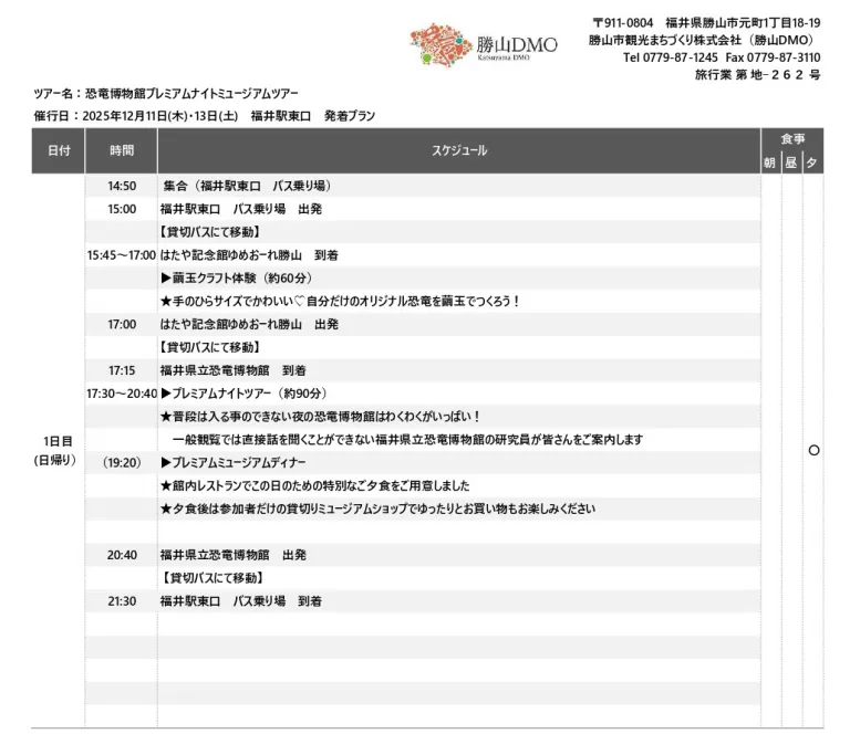 「恐竜博物館プレミアムナイトミュージアムツアー」について