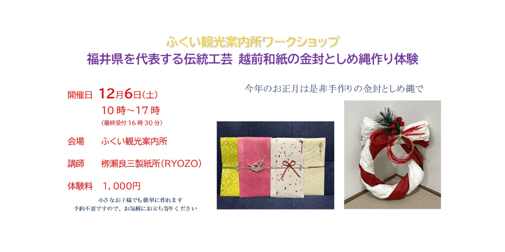 12/6(土)は福井県を代表する伝統工芸 越前和紙の金封としめ縄作り体験