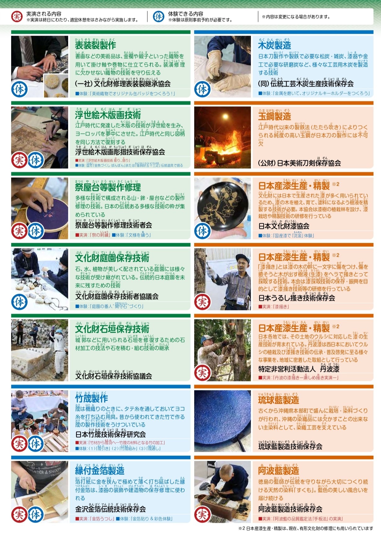 選定保存技術保存団体による展示・実演・体験等を行います。