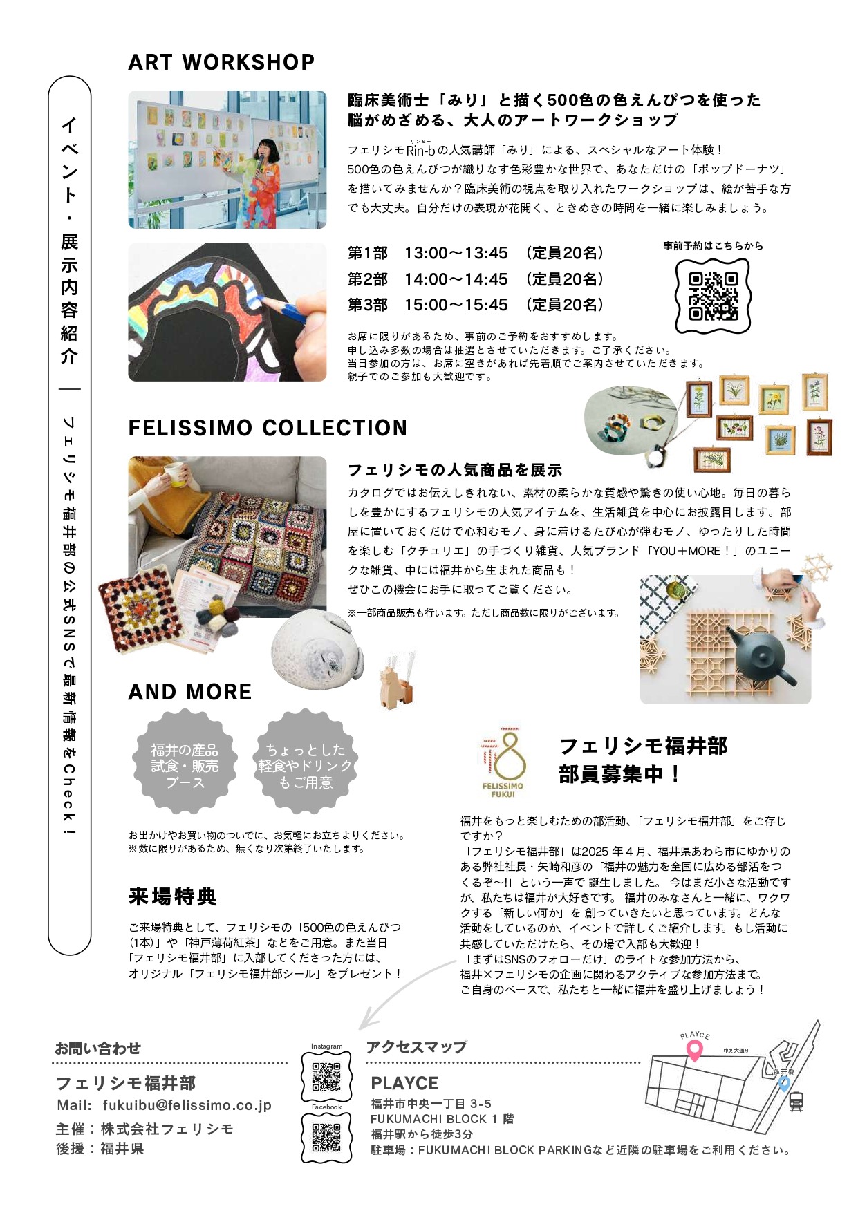 2026年3月1日(日)、福井駅前の「PLAYCE」にて、神戸の通販会社フェリシモによる福井初開催の体験型イベントが行われます。