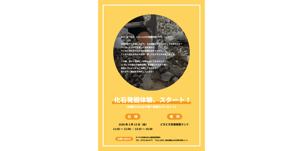3/13(金)から、いよいよ化石発掘体験がスタートします!