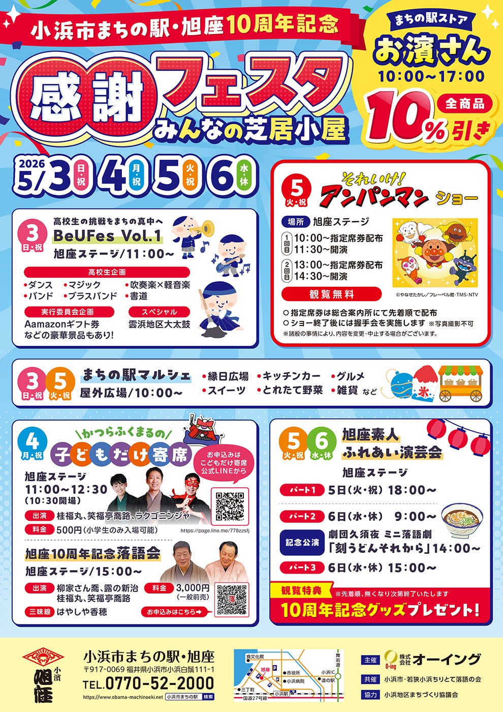 小浜のまちに笑顔があふれる4日間! 「小浜市まちの駅・旭座 10周年記念 感謝フェスタ」を開催します。