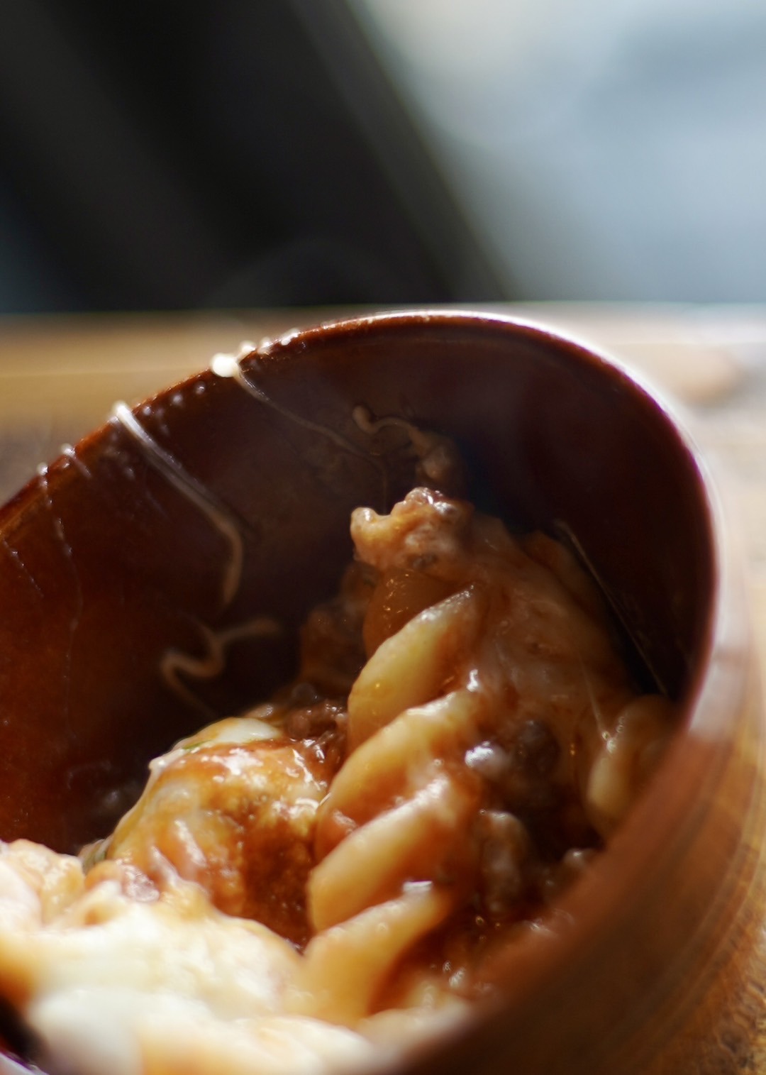 螺旋状のパスタ、フジッリに、ラグー(ミートソース)やトマトソース、チーズがよく絡んで、笑いたくなる。