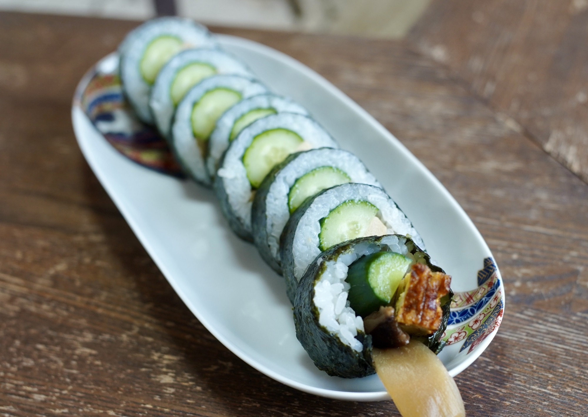 胡瓜、玉子焼き、かんぴょうが巻かれたシンプルな太巻きだが、昨今の豪華なものよりも、むしろこうした素朴な味わいの方がしみじみとうまい。
