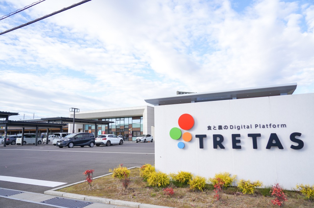 食と農のデジタルプラットフォーム「TRETAS」は、ライブ配信スタジオやイベントホールまで備えた次世代型の産直施設。TRETASの魅力は、県内全域の特産品が集まること。県内各地に毎朝トラックを走らせ、まさに“食べる福井”を体感できるラインナップが揃います。