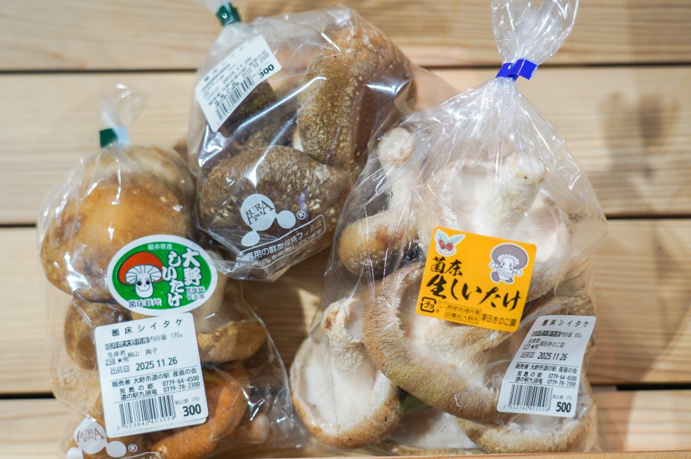 そして、駅長の一押しは「しいたけ」!実は大野は昔からしいたけの産地でもあり、年間を通して時季に合わせた豊富な種類が育ちます。つまり、いつ訪れても旬のしいたけに出会えます!旨みがぎゅっと凝縮された味わいは、売り上げ上位トップ3に入るほどの人気ぶり。ここを訪れれば、まちがいなく奥越の食文化と豊かさを五感で味わえるはず。