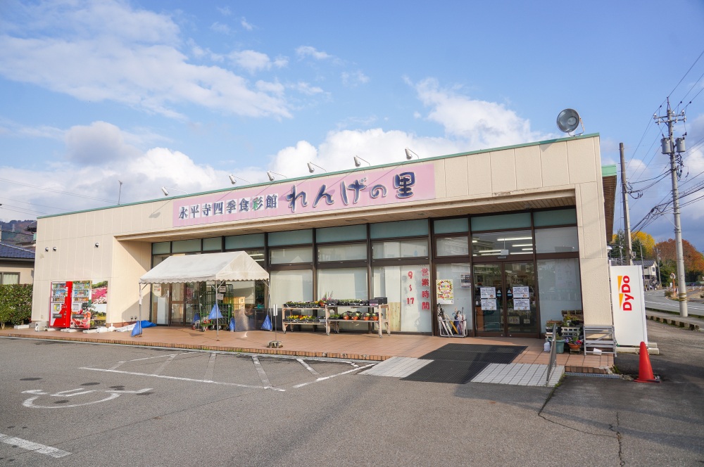 福井県永平寺町の食材を取り揃えた直売所「れんげの里」。「スイートコーン」や「五領たまねぎ」、「上志比にんにく」など、この地域ならではの珍しい特産品が並び、冬季でもハウス栽培によって新鮮な野菜が豊富にそろいます。産地直売にとどまらず、地元生産者グループが手づくりした惣菜やお弁当、加工食品も充実し、思わず目移りしてしまうラインナップ。さらに、大本山永平寺御用達として知られる産地限定の「コシヒカリ玄米」も販売され、食にこだわる人から支持を集めています。