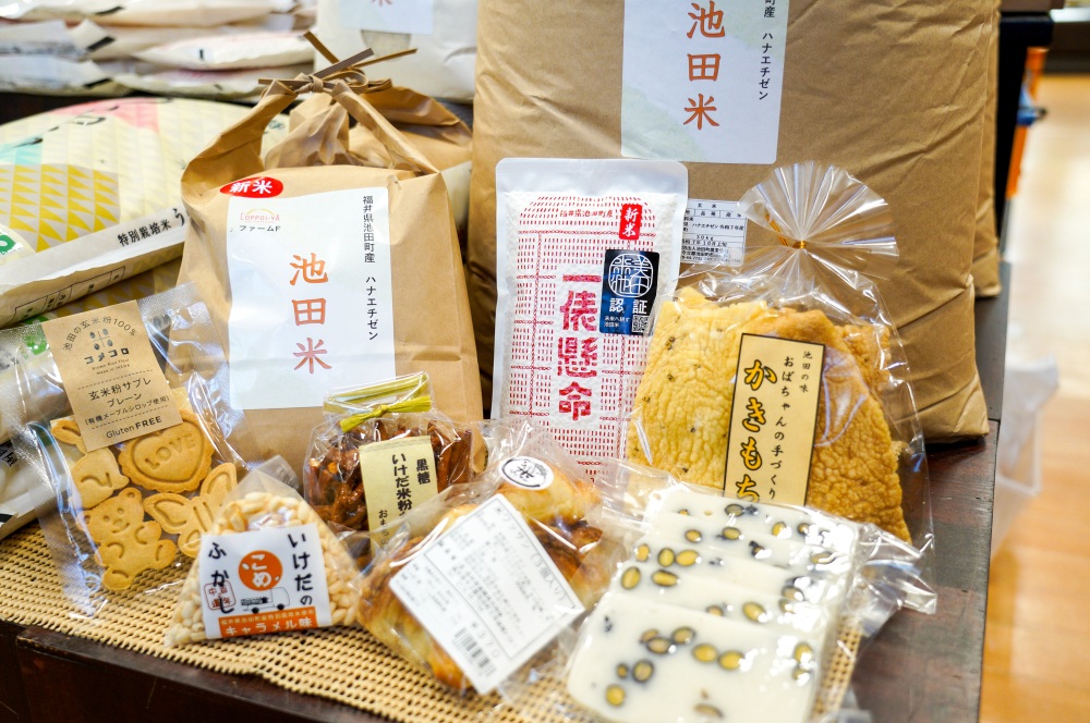 なかでも一押しは、お米とその加工品。県内でも寒暖差の大きい盆地で育った池田町産米は、甘みと香りが際立つ格別の味わい。そのお米や餅米を使って作られる「米粉パン」、おばちゃんたちの手づくりがうれしい昔ながらの「かきもち」、こだわり抜かれた「お餅」など、池田の人が池田町産米を使って丹精込めてつくる商品の数々は、ここだけの美味しさ。