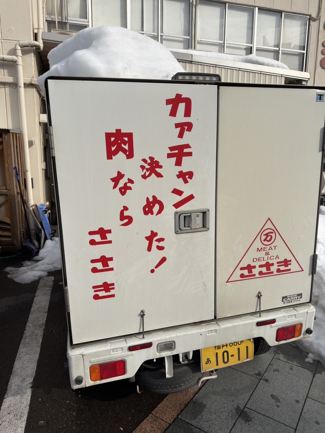 トラックには「カアチャン決めた! 肉ならささき」という名コピーが掲げられている。
