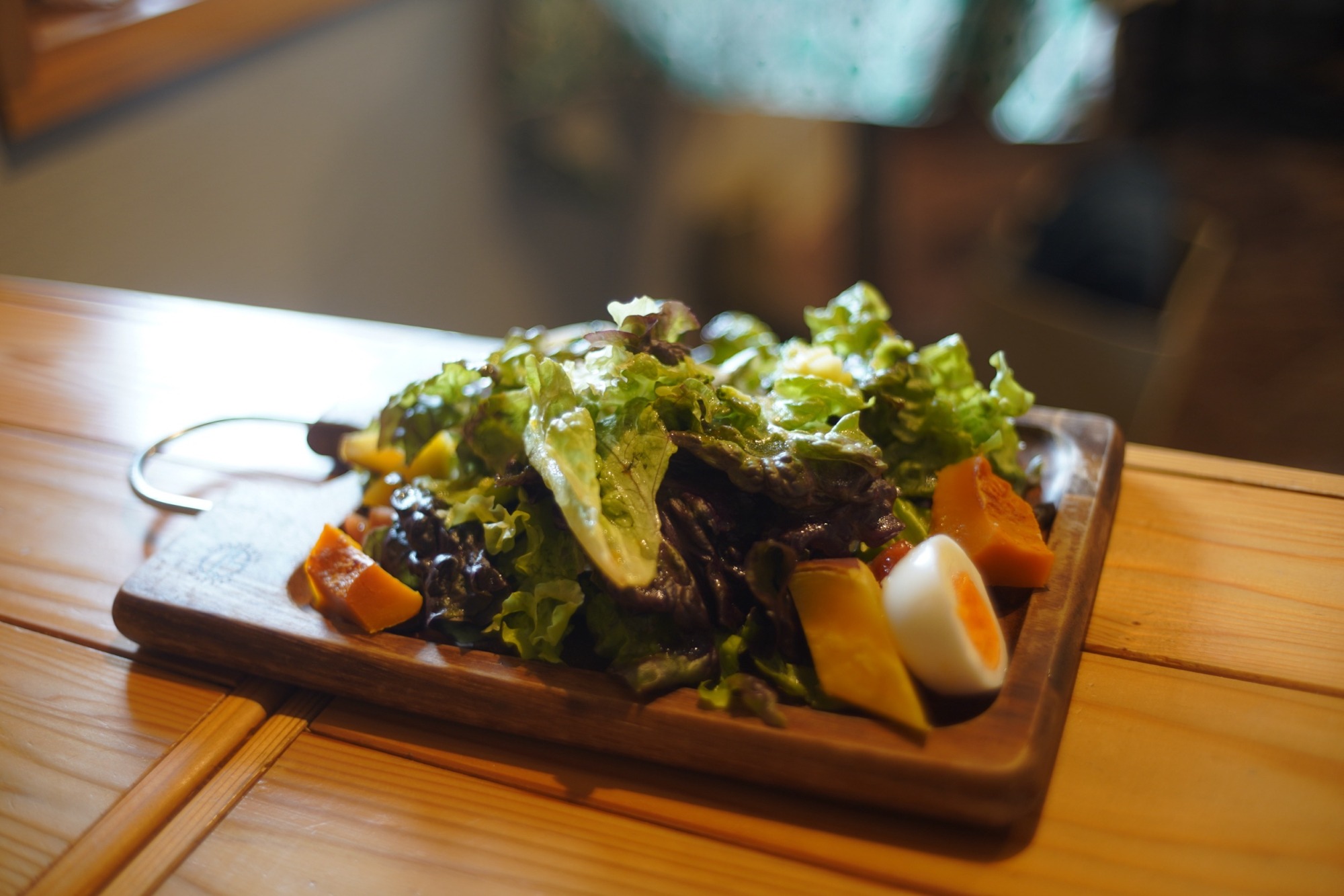 前菜に有機野菜のサラダをいただき、このピザかセイコガニのパスタを食べれば、幸せのミゾにはまるのは間違いない。