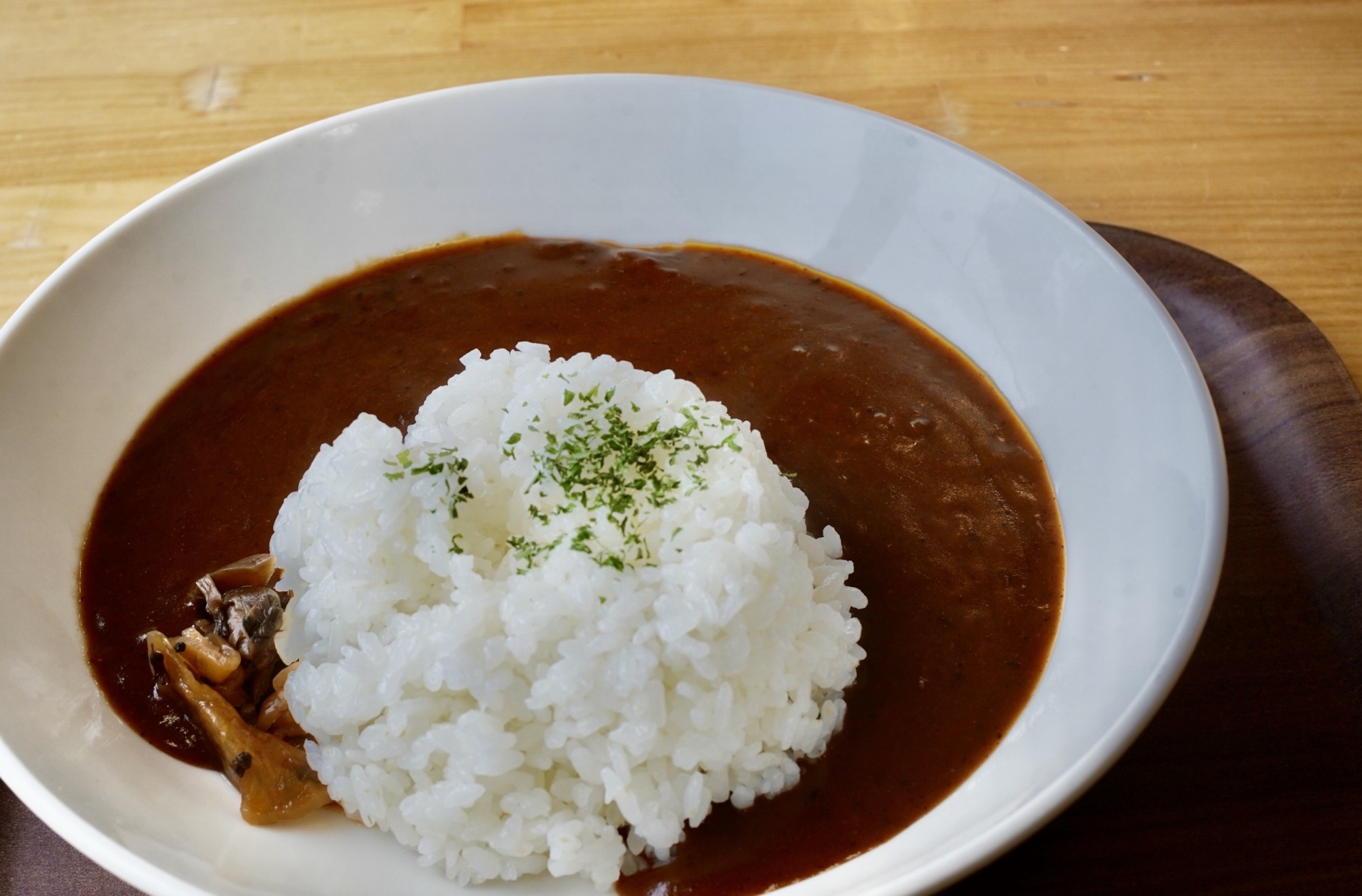 さらには欲張ってカレーも食べ、小豆ときな粉のぼた餅も食べた。