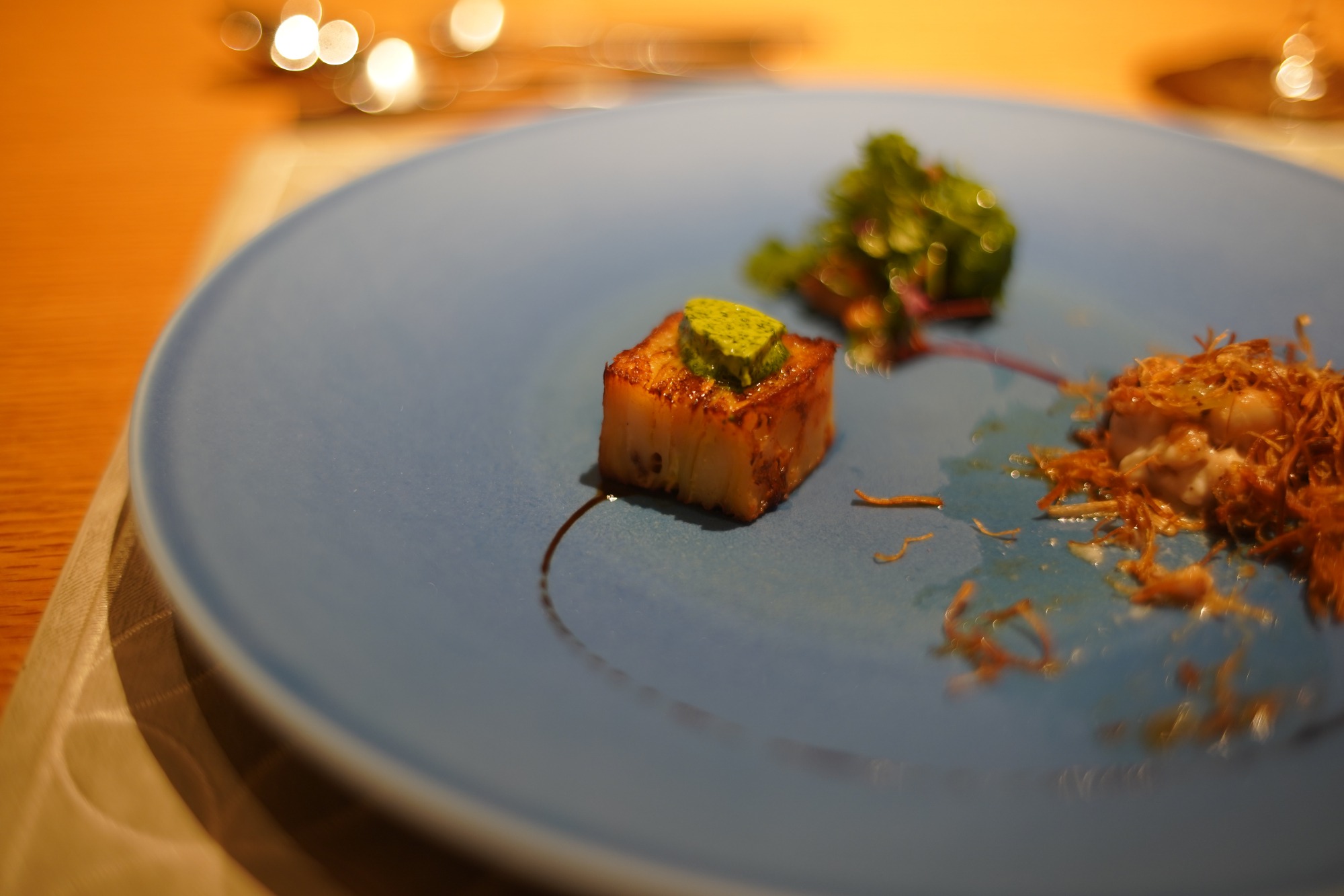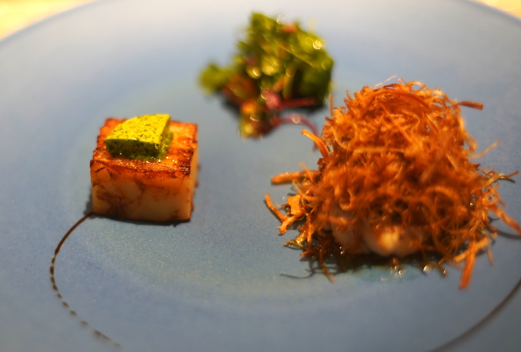 「白子のムニエル 焦がしネギとトリュフの香り & 鱈とじゃがいものパルマンティエ」