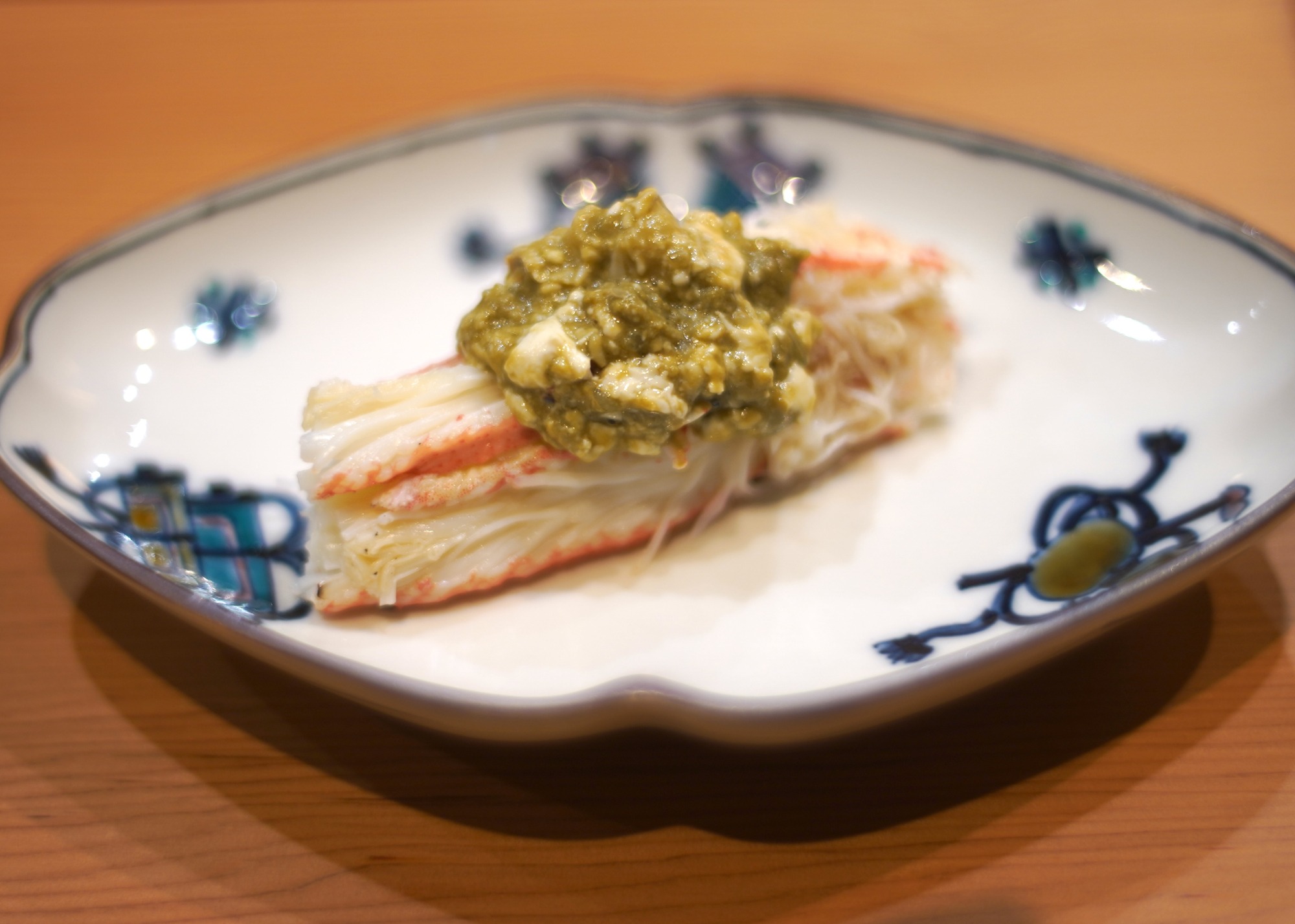 帆立と海苔の茶碗蒸しを挟み、ズワイガニの握り。