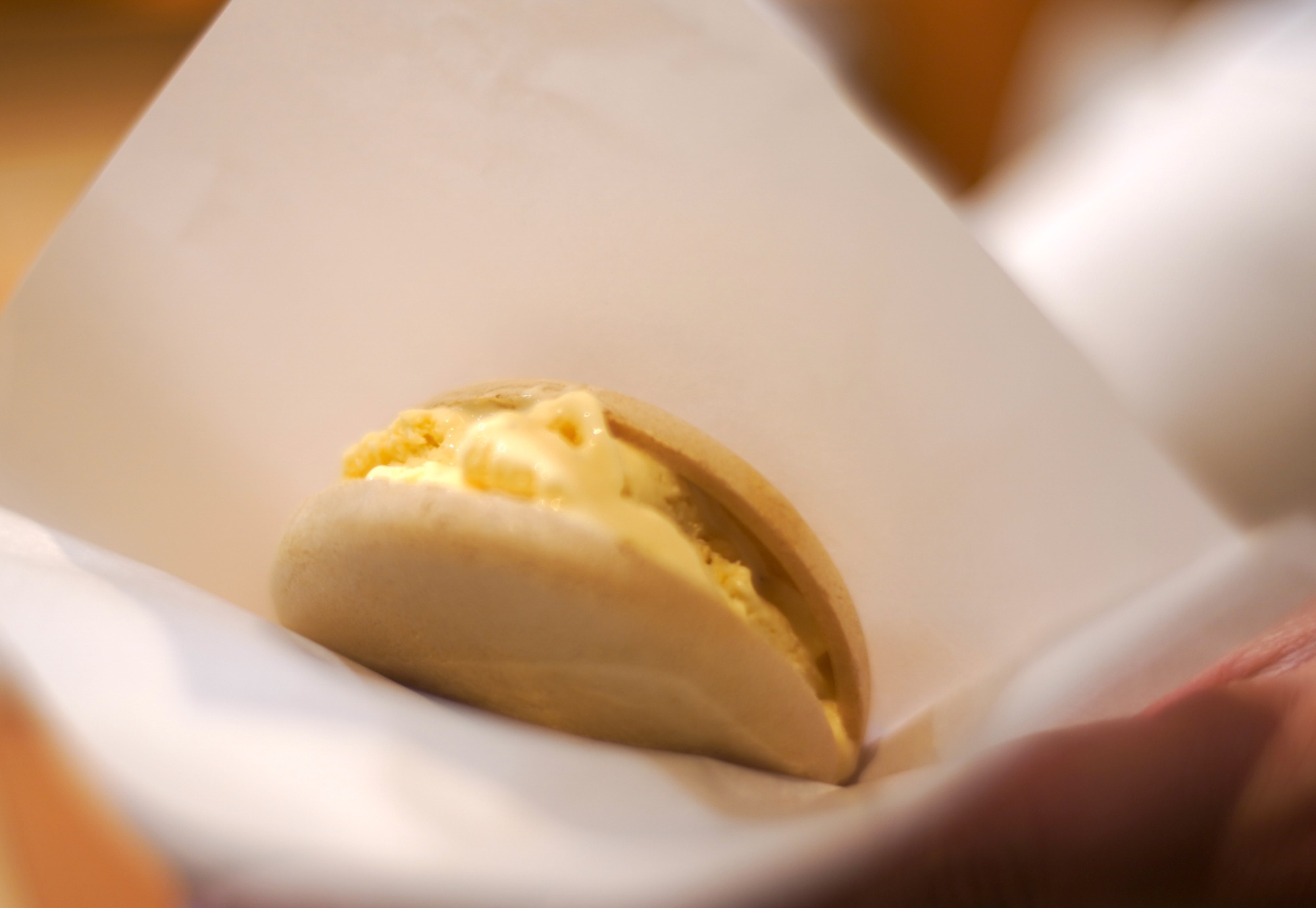 甘味は、薄いチョコレートを挟み込んだラム酒の最中アイス。