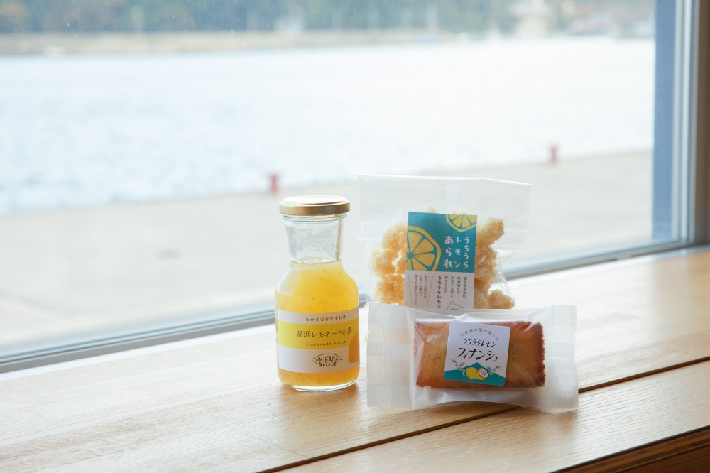 地元特産品が揃う「UMIKARA Select」では、地産魚介の加工品に加え、高浜町内浦地区の特産品「うちうらレモン」を使ったスイーツなどお土産も充実しています。「うみから食堂」では、マハタの漬け丼や鯛だしラーメンなど、地元の海の幸をたっぷり味わえるメニューが揃い、屋上テラスでは美しい海景を眺めながら軽食も楽しめます。海の幸を「見て・選んで・食べる」という一連の体験ができる、ファミリーにも最適な海の拠点です。