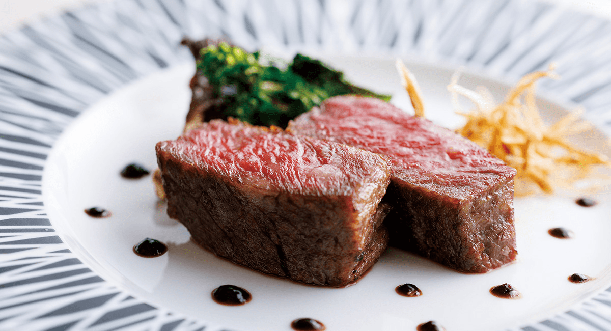 明治時代から食用とされ、肉の甘みを強めるための独自配合の飼料で育つ伝統ある和牛は、サシがきめ細やかな肉質と風味の良さが特長。