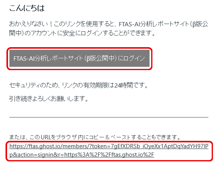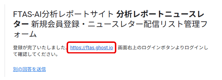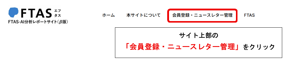 ①サイト(FTAS-AI分析レポートサイト(β版) )にアクセス