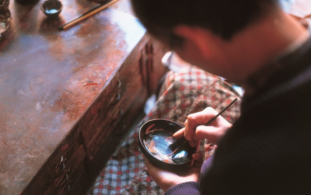 Dans la région d’Echizen, au centre de la préfecture de Fukui, les artisans suivent un principe : ne jamais refuser un travail, aussi difficile qu’il puisse paraître. Ces nouveaux défis favorisent souvent la collaboration intersectorielle, et cette région est idéale pour cela : de nombreux métiers d’art traditionnels — tels que le papier Echizen, la laque Echizen, la céramique Echizen, les commodes Echizen et les lames Echizen — coexistent ici dans un rayon de 10 kilomètres.