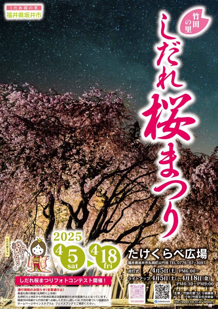 Le « Festival des cerisiers pleureurs de Takeda no Sato » se tiendra du samedi 5 avril au vendredi 18 avril 2025.