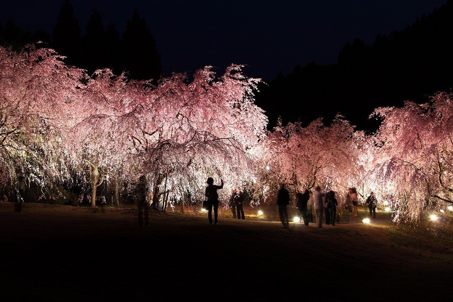 Une centaine de cerisiers pleureurs seront en pleine floraison autour de la place Takekurabe, et dès le coucher du soleil, les visiteurs pourront profiter de l'atmosphère fantastique créée par l'illumination des arbres.