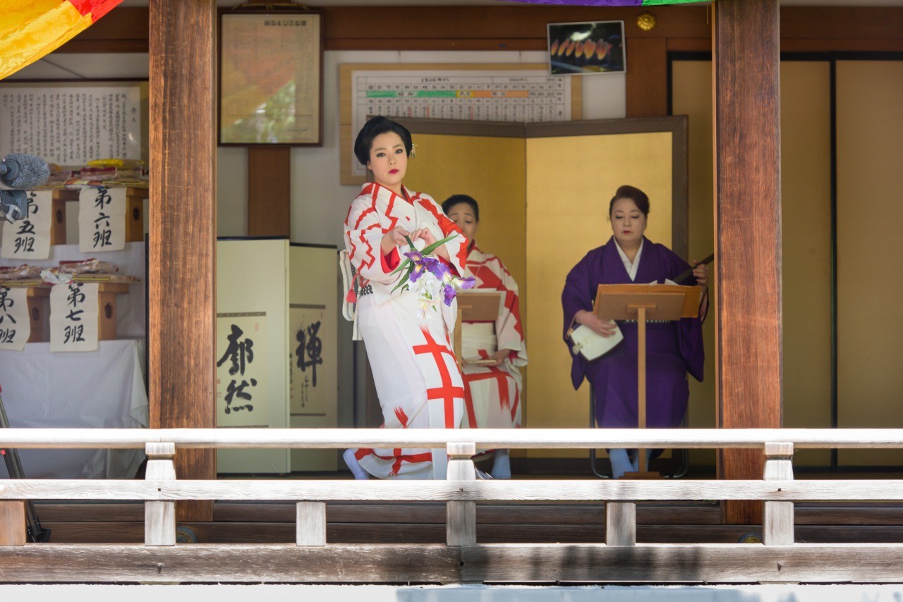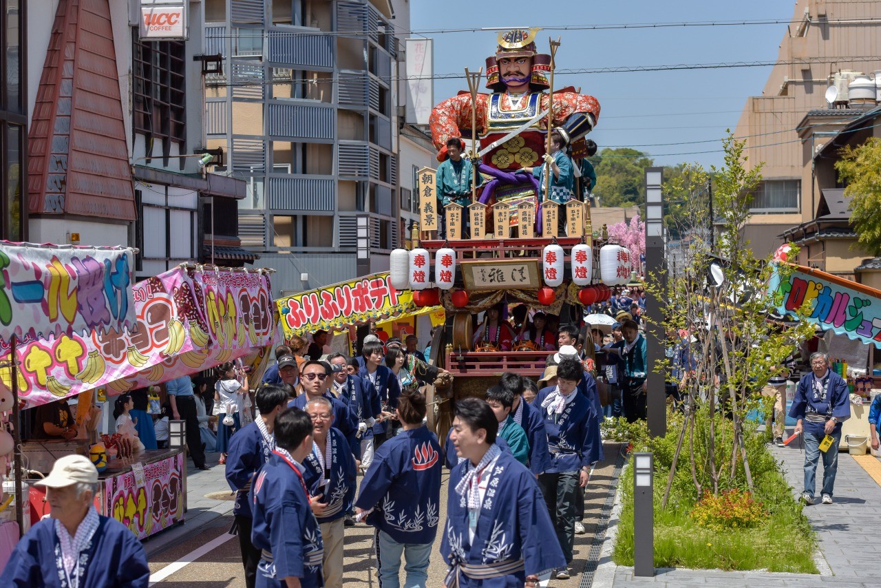 Le festival commence par un spectacle de danse donné par des geiko, suivi d'un défilé de trois chars : un immense char en forme de poupée, un char décoré de fleurs de cerisier et un char taiko avec de grands tambours. Les geiko montent sur les chars décorés de fleurs de cerisier et jouent une magnifique musique d'accompagnement pour le plus grand plaisir des spectateurs, tandis que des stands bordent les rues.