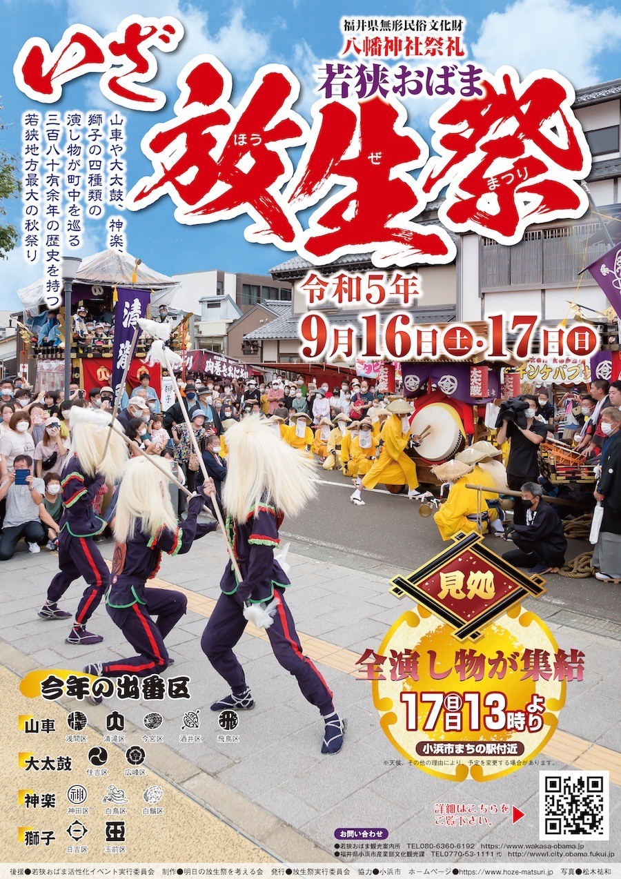 Venez découvrir le magnifique et spectaculaire festival Housho, le plus grand festival d'automne de la région de Wakasa, qui attire de nombreux touristes venus de l'extérieur de la préfecture.