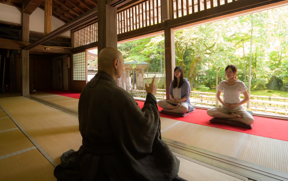 La méditation Ajikan à Myotsuji : Cette pratique ne repose pas sur le zazen. Les participants commencent par fixer la flamme d’une bougie, puis se concentrent sur un caractère sanskrit illuminé par cette flamme. Petit à petit, ils calment leur esprit et respirent profondément en s’imaginant en harmonie avec la nature. Contrairement au zazen, la position du lotus n’est pas obligatoire : il est possible de s’asseoir sur une chaise.