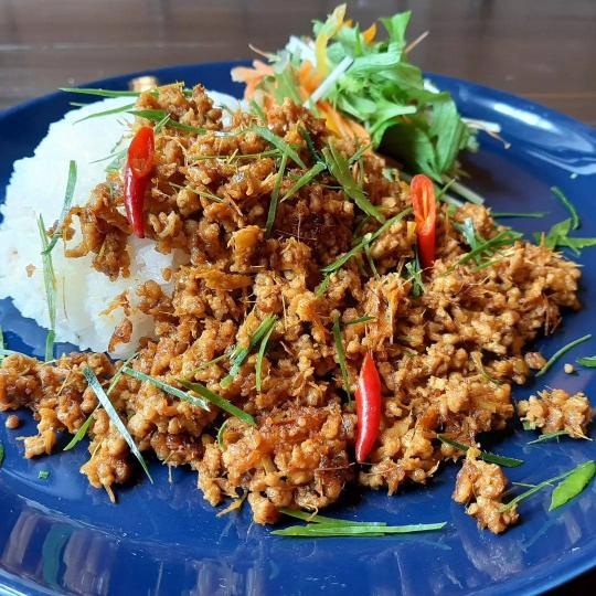世界90ヶ国を旅した、旅人料理人が営む多国籍料理店。看板メニューの「スリランカのライス&カリー」は、カレー2種と副菜8種が盛り付けられ、混ぜて味の変化を楽しみながらいただきます。日本人にも食べやすい本格的なスパイスカレーです。ガパオライスやカオマンガイも人気です。