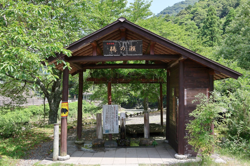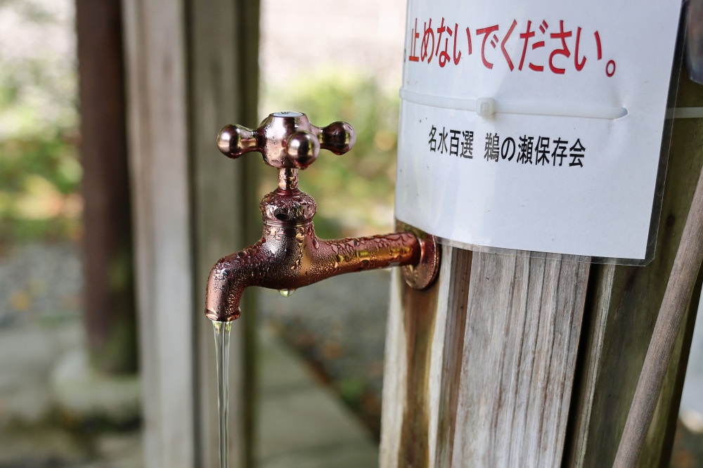 鵜の瀬の水は「名水百選」にも選ばれていて、水を汲むこともできます。水を汲みたい方は、近くにあるステッカー販売機でステッカーをお買い求めください。