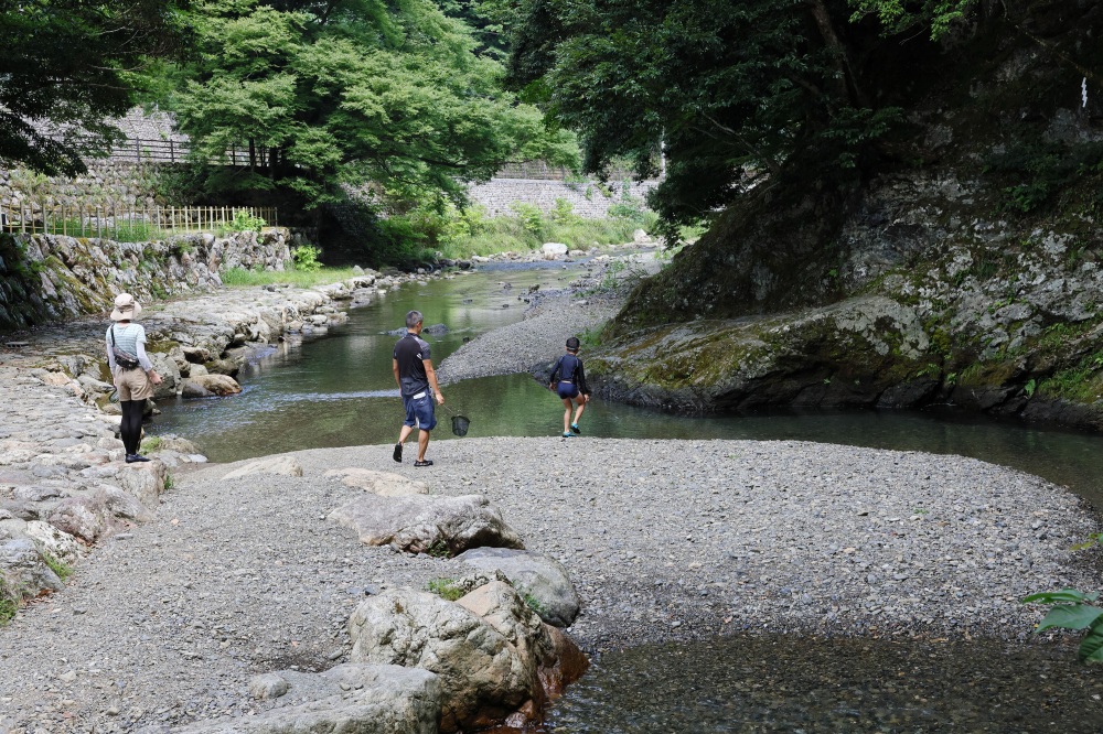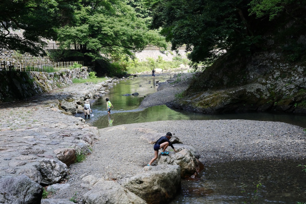 きれいな水が流れる染ヶ谷川をせき止めて川遊びができるようにした場所や、自然のままの渓流を楽しめる場所などがあり、水の中には魚や沢蟹などがいるので、ぜひ見つけてみてください。